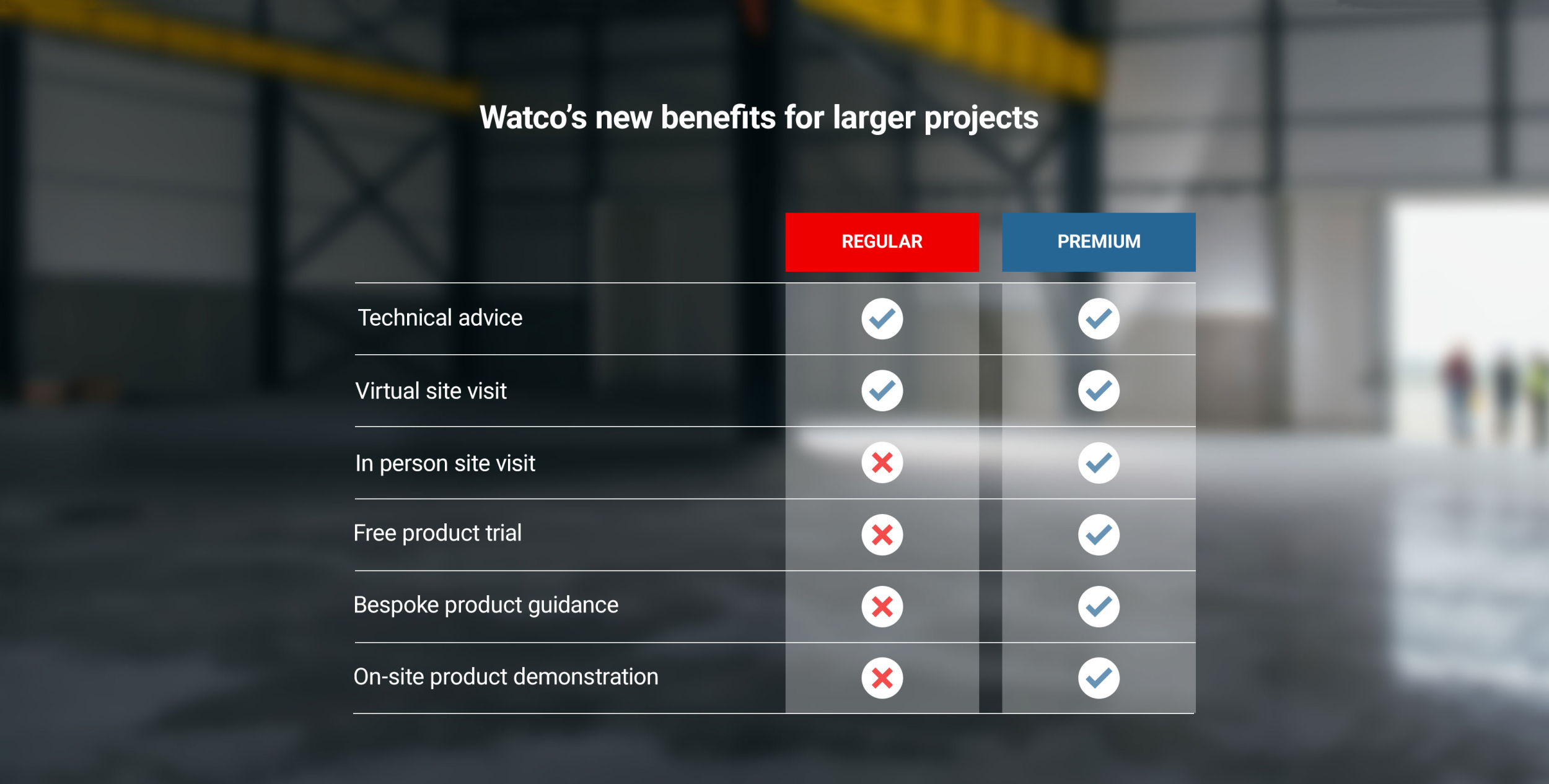 The terms and conditions of the service (on-site appointments, free product trials, product demonstrations, etc.) may vary depending on the company, the project or the location of the appointment. Watco reserves the right to modify, reject or cancel any of the services offered for legitimate reasons. The customer will be informed of any changes or cancellations as soon as possible.